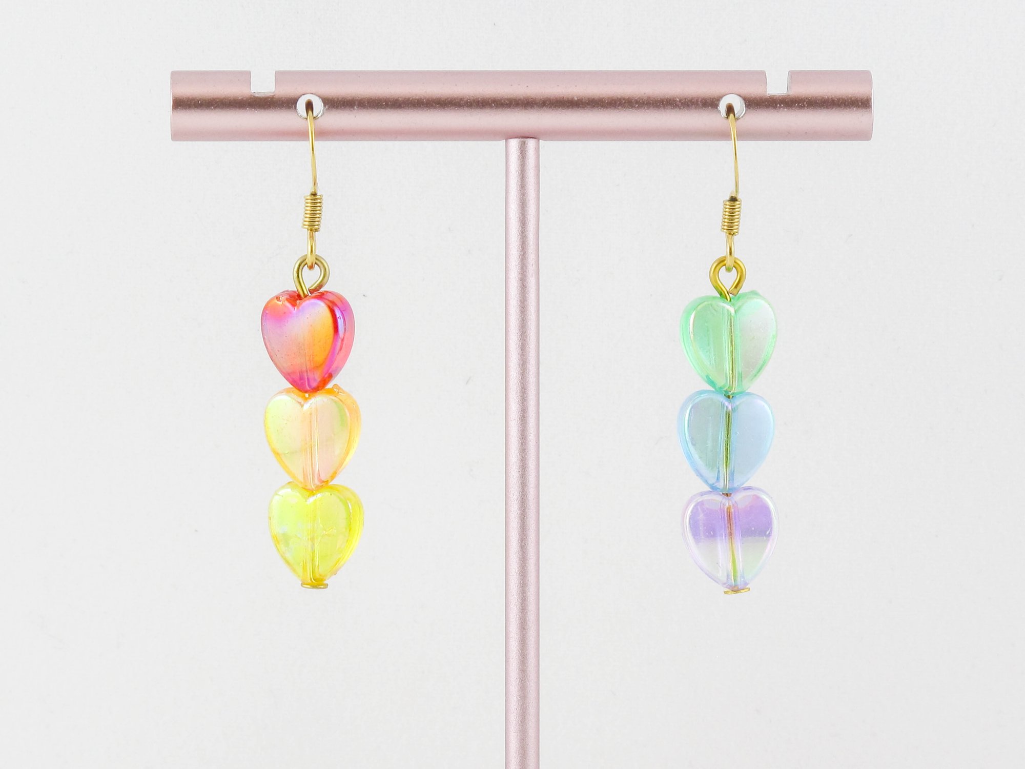 Plastic rainbow heart beads 304 Stainless steel earrings and findings